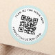 Elégant, étiquette de code QR rond avec du texte circulaire et une bordure bleu aqua clair solide. Toutes les couleurs sont personnalisables