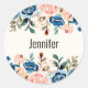 Sticker Rond Bordure des fleurs d'aquarelle rose et bleu