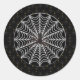 Sticker Rond Bordure Noire Araignée Blanche Web et Araignée Noi