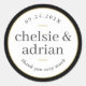 Faites une déclaration d'élégance sous-jacente avec ce mariage simple et textuel merci étiquette autocollant avec une bordure de noir et d'or sur blanc. Utilisez l'option de personnalisation pour modifier les couleurs et les polices en fonction de votre thème mariage.