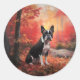Sticker Rond Boston Terrier à l'automne Leaves automne Inspire