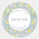 Aquarelle moderne jaune, vert et blanc motif de fleurs botaniques sauvages sur un arrière - plan bleu pâle pour une sensation d'été frais. Superbe coordination Save the Date stickers comme un rappel pratique pour vos invités. Modifiez le texte de votre célébration.