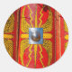 L'armée de l'Empire romain décoré en rouge bouclier les scutums d'une rangée et le texte INVINCIBLE sur les t-shirts. Imprime et cadeaux pour le plaisir et la bonne humeur.