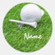 Boule de golf et tee-on sur herbe verte Sticker rond classique