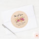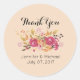 Un autocollant de remerciement mariage avec une jolie image numérique faite d'aquarelles. Fleurs roses et oranges dans un bouquet avec brindilles, sprigs et feuilles dans les couleurs marron et orange. L'arrière - plan est assez orange pastel pêche.