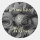 Ajoutez une touche de romantisme à vos enveloppes avec ce sceau de bouquet rose en noir et blanc élégant. Le texte est jaune pâle.