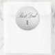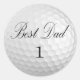 Autocollant rond avec l'image d'une balle de golf blanche avec l'expression personnalisable "Best Dad 1". Voir la balise de faveur et le étiquette correspondants. Voir l’ensemble de la collection Sticker de la Fête du Père dans les INVITATIONS | Section Stickers & Étiquettes.