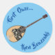 Bouzouki grec à trois cordes. Texte personnalisé. D'abord Ouzo, puis Bouzouki. Arrière - plan bleu clair.
