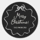 Ces adorables autocollants de vacances présentent un cadre ondulé blanc et tendance avec un ruban rétro fantaisiste, sur un élégant arrière - plan noir foncé. L'écriture moderne dit "Joyeux Noël".