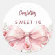 Un arrière - plan blanc. Décoré d'un grand arc rose et de fleurs roses. Personnalisez et ajoutez un nom. Script de style manuscrit noir.