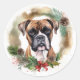 Sticker Rond Boxer Christmas Wreath Festive Pup