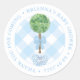 Sticker Rond Boxwood classique Topiary Baby shower bleu Merci