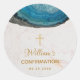 Sticker Rond Boy Confirmation Blue Geode Élégant Script Marble