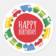Sticker Rond Boys Jouets Transport Train Voiture Bonne fête d'a