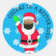 Sticker Rond Bravo à une Père Noël Ethnique 2021 mieux facémasq