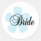 Une jolie fleur bleue et un texte noir qui dit "Mariée" est présenté sur nos T-shirts, sacs fourre-tout, cartes, tasses, boutons, mousepades et autres articles de mariée.