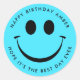 Sticker Rond Bright Turquoise Happy Face Anniversaire Amusant
