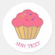 Sticker Rond Broderie Cupcake fraise Imprimer Texte personnalis