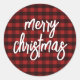 Sticker Rond Buffalo Plaid Script Calligraphie Joyeux Noël
