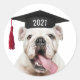 Sticker Rond Bulldog dans la casquette de graduation avec l'ann