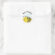 Bee Happy Bumblebee. Des autocollants biscornus avec une abeille au miel de dessin animé en noir et jaune. Il a un grand corps jaune ovale avec trois bandes verticales noires. Son airain est noir et a des ailes transparentes bleu clair. Deux noirs se sentent sur la tête et un joli visage heureux. L'arrière - plan est blanc mais peut être modifié en cliquant sur personnaliser et en sélectionnant la couleur arrière - plan de votre choix.