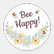 Un joli dessin d'abeille et fleurit sur un arrière - plan de nid d'abeille. Le texte dit "Bee Happy !" mais peut être customisé en quelques clics seulement.