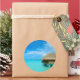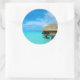 Sticker avec un bungalow sur l'eau en lune de miel dans un resort de luxe dans le lagon bleu clair de l'île pacifique de Bora Bora, près de Tahiti dans l'archipel de la Polynésie française.