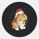 Sticker Rond Bunny Rabbit Christmas Lights Santa Hat Funny Xmas