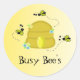 Un design mignon avec une ruche avec trois abeilles bourdonnantes. Des fleurs de Whimsical mettent l'accent sur la ruche. Le dicton "Les abeilles occupées" peut être sauvé.