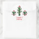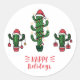 Carte de Noël, cactus avec casquette du Père Noël, lumières de Noël, boules et boîtes cadeaux, joyeuses fêtes