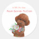Sticker Rond Cadeau mignon chien chiot caniche rouge personnali