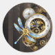 Cadran d'antiquités avec or et lances en laiton, décoré de libellules mécaniques sur arrière - plan brun rayé. Steampunk.