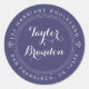Mariage moderne, rustique et chic retour adresse classique collant rond avec le texte le futur M et Mme en blanc élégant calligraphie sur un arrière - plan bleu marine embellie de détails décoratifs. Ajoutez simplement votre nom et votre adresse. Conçu exclusivement pour vous par Happy Dolphin Studio. Si vous avez besoin d'aide ou de produits correspondants, veuillez nous contacter à happydolphinstudio@outlook.com . Nous sommes heureux de vous aider à faire de votre mariage la plus belle journée!
