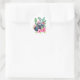 Fleurs roses, feuillage vert et autocollants de caméra vintages.