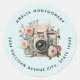 Sticker Rond Camera with Flowers Retro Pastel Image - Address