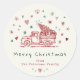 Sticker Rond Camion de Noël Whimsical Retro Rouge et Vert