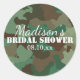 Arrière - plan camo vert et texte blanc en gras. La douche nuptiale est écrite dans un texte de pochoir militaire rétro gras. Le nom de la mariée est écrit dans une police plus féminine. La date est juste en dessous. Les trois polices combinées pour un look de hanche rétro. Facile à personnaliser.