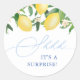 Shhh It's a Surprise stickers / enveloppes scellés. Le design est composé de citrons aquarelle aux fleurs pâles et de texte bleu pastel/bleu cobalt. Ils correspondent à mon invitation surprise de fête dans la même couleur.
