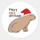 Sticker Rond Capybara De Noël Mignonne Illustré À La Main
