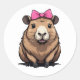 Sticker Rond Capybara mignonne avec béquille en ruban rose femm