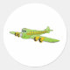 Un avion de ligne fantaisiste en caricature verte volant dans le ciel amical.
