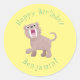 Sticker Rond Caricature du tigre mignon Saber Toothed Smilodon