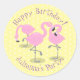 C'est l'heure de la fête ! Ce joli trio de flamants roses apportera un peu de plaisir tropical à toute fête. Dessiné dans le style d'illustration de dessin animé sur un arrière - plan à pois jaune et blanc clair.