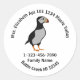 Puffin à cornes debout illustré de la vue latérale. La tête de ce joli oiseau se tourne pour montrer son marquage de bec. Coordonnées; nom de famille, numéro de téléphone et adresse faite dans un format simple, remplir le formulaire vide. Merci à maman ou papa en les aidant avec une économie de temps extraordinaire pour avoir étiqueté les sacs de repas pour enfants.