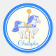 Cheval carrousel amusant en bleu et or décoré d'étoiles pour correspondre à notre collection de poney peint. Customisez avec un nom ou une note de remerciements.