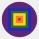 Montrez votre amour de la couleur avec un arc-en-ciel géométrique. Une série de carrés rouges, oranges, jaunes, verts, bleus, indiens et violets rayonnent du centre de ce design festif. numériquement a créé une image de 5 400 x 5 400 pixels. Copyright ©2011 Claire E. Skinner, Tous droits réservés.