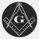 Un autocollant maçonnique portant le Carré traditionnel et la boussole avec l'inset G.