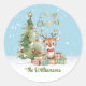 Sticker Rond Carte Arbre de Noël aux rennes d'aquarelle mignonn