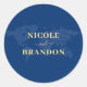Montage du monde bleu foncé et jaune autocollant mariage rond pour un mariage de destination.