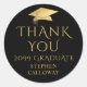 Autocollants de remerciement de fin d'études élégants noirs et or (ou d'autres couleurs) ou sceaux d'enveloppe présentant un capuchon de fin d'études en feuille d'or métallisé faux et une typographie calligraphique élégante. La couleur de fond noir et la couleur du texte peuvent être modifiées et éditées pour correspondre à une couleur d'école ou à une couleur qui coordonne avec votre annonce de fin d'études, votre invitation ou votre papeterie de carte de remerciement ou les couleurs du thème de la fête de fin d'études si elles sont utilisées comme autocollants de faveur de fête. ASSISTANCE : Pour obtenir de l'aide concernant la modification ou la personnalisation de la conception, le changement de couleur, le transfert de la conception vers un autre produit ou si vous souhaitez des articles de coordination, contactez le concepteur AVANT DE COMMANDER via l'onglet MESSAGE